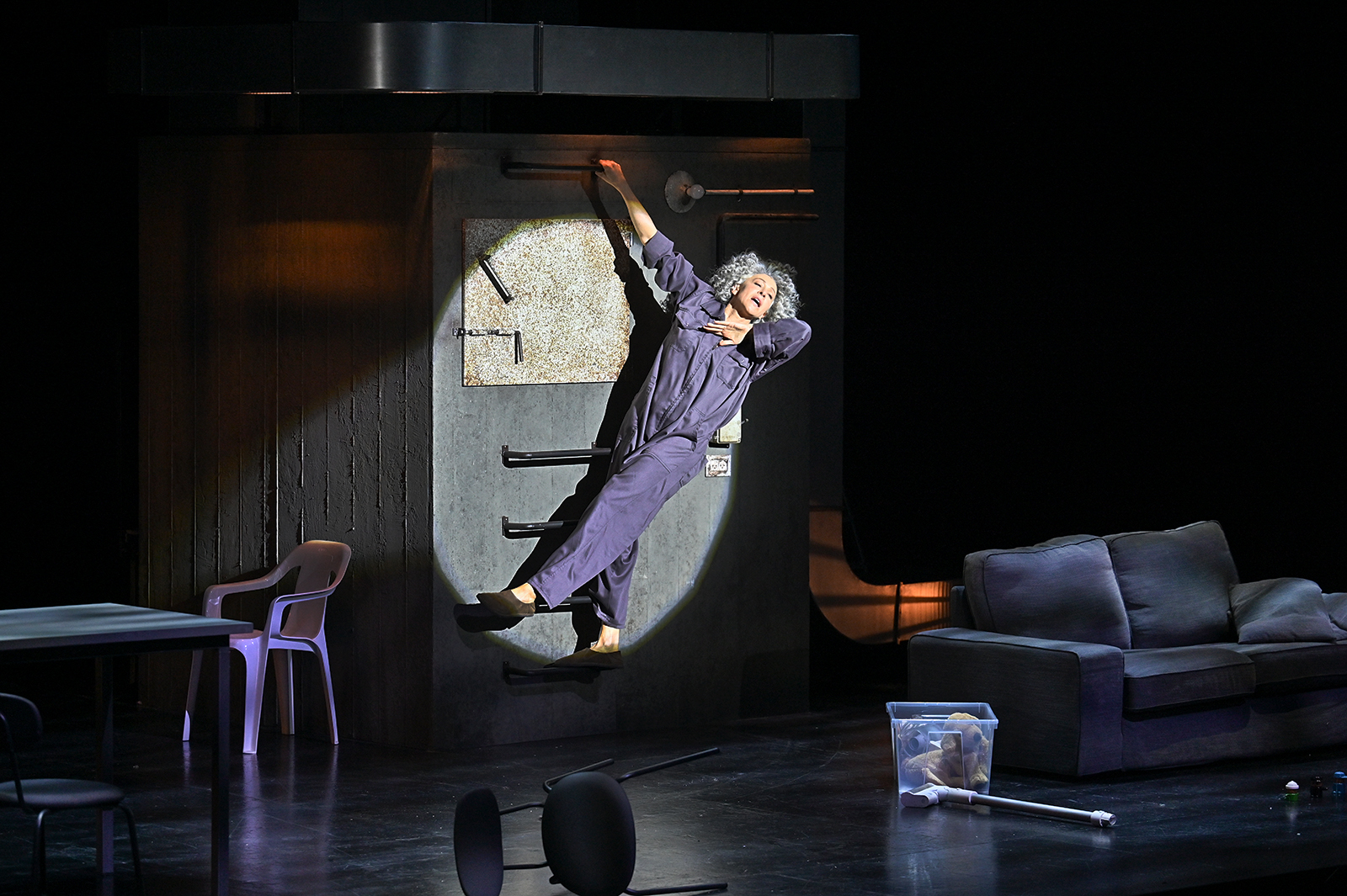 Героиня ее спектакля, обнаруживающая себя в начале истории под столом, в конце оказывается в буквальном смысле между мирами, в состоянии метафизической растерянности женщины и матери в эпоху тотальной войны.